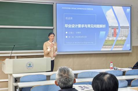 王艳芳系统梳理了毕业设计的制度规范与工作流程,就工作量标准、设计说明书撰写、图纸绘制等关键环节进行了详细解读。她结合机设类课题的典型问题,从资料完整性审查到制图规范性要求,逐一剖析了常见疏漏,为教师指导学生规避类似问题提供了具体参照。